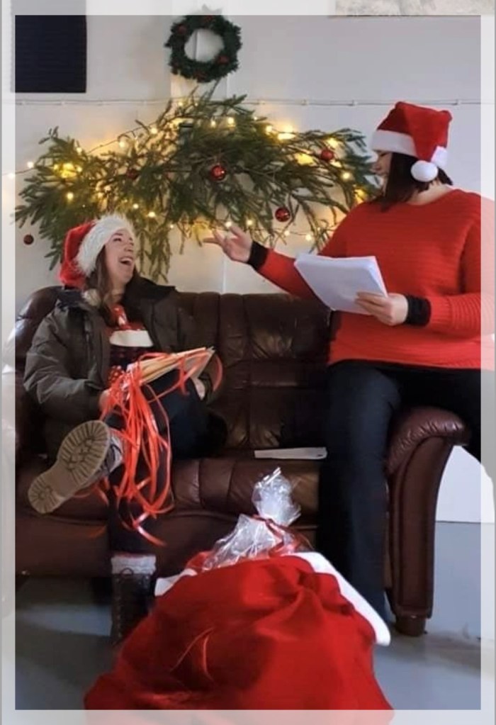 Bilden ovan är från förra årets julklappsjakt där vi hade många härliga deltagande ekipage som bidrog med glada hejarop, skratt, tomteluvor och rim.
